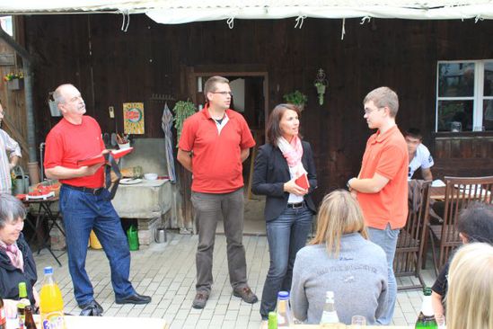 Danach ließ die Bundestagsabgeordnete den Abend beim traditionellen Sommerfest des SPD-Ortsvereins Gundelfingen ausklingen. Seit einigen Jahren treffen sich die Mitglieder und FreundInnen des Ortsvereins zum gemütlichen Beisammensein in "Kapplers Garten". Rita Schwarzelühr-Sutter erhielt dabei die Gelegenheit dem neusten Mitglied des Ortsvereins zum Parteieintritt zu beglückwünschen und ihm das Parteibuch zu überreichen.